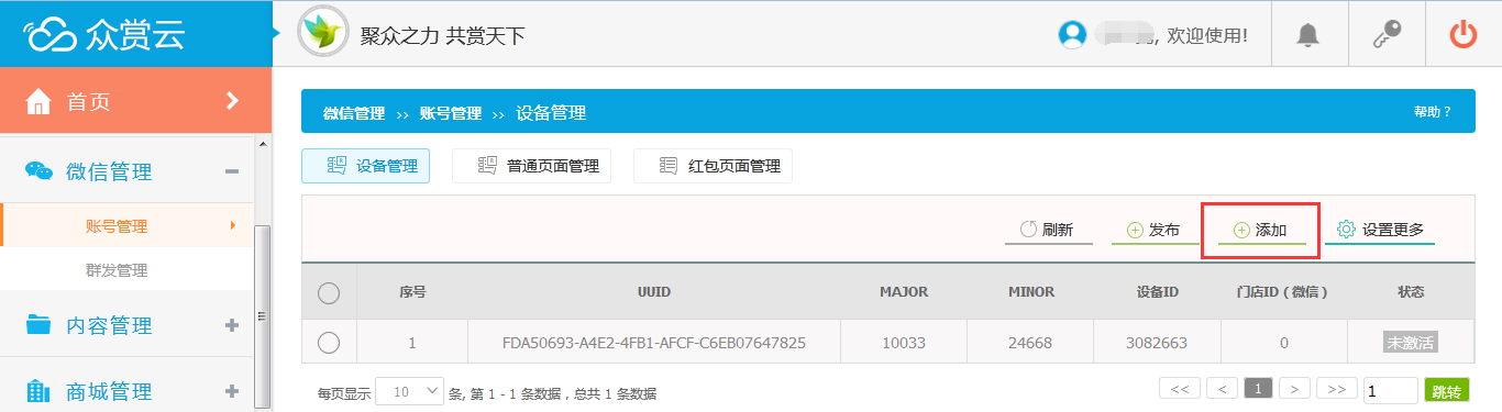 step2. 系统默认进入【设备管理】页面,点击【添加】按钮,如下图所示: