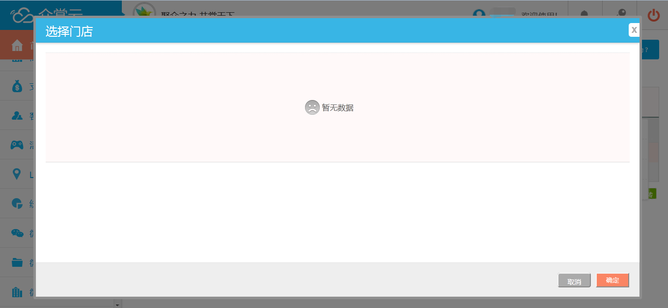 step10. 系统弹出门店列表,选择相应的门店点击【确定】按钮,如下图所示: